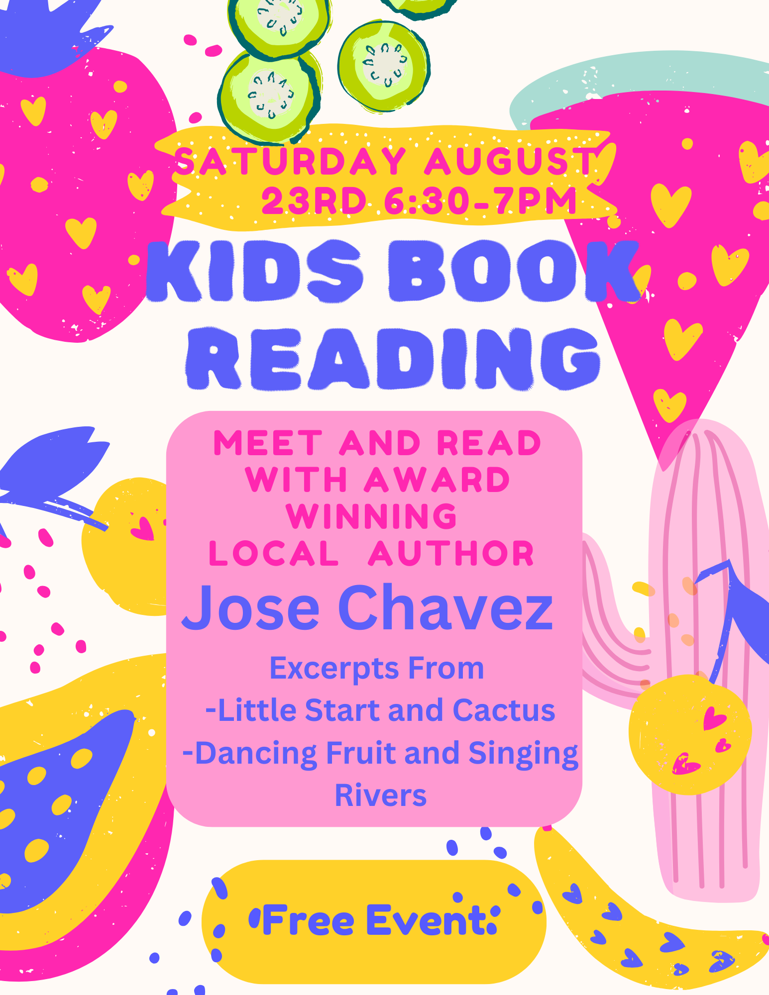 Join Award Winning Children’s book author Jose Chevez for a reading from his books Little Stars and Cactus, and Dancing Fruit, Singing Rivers.